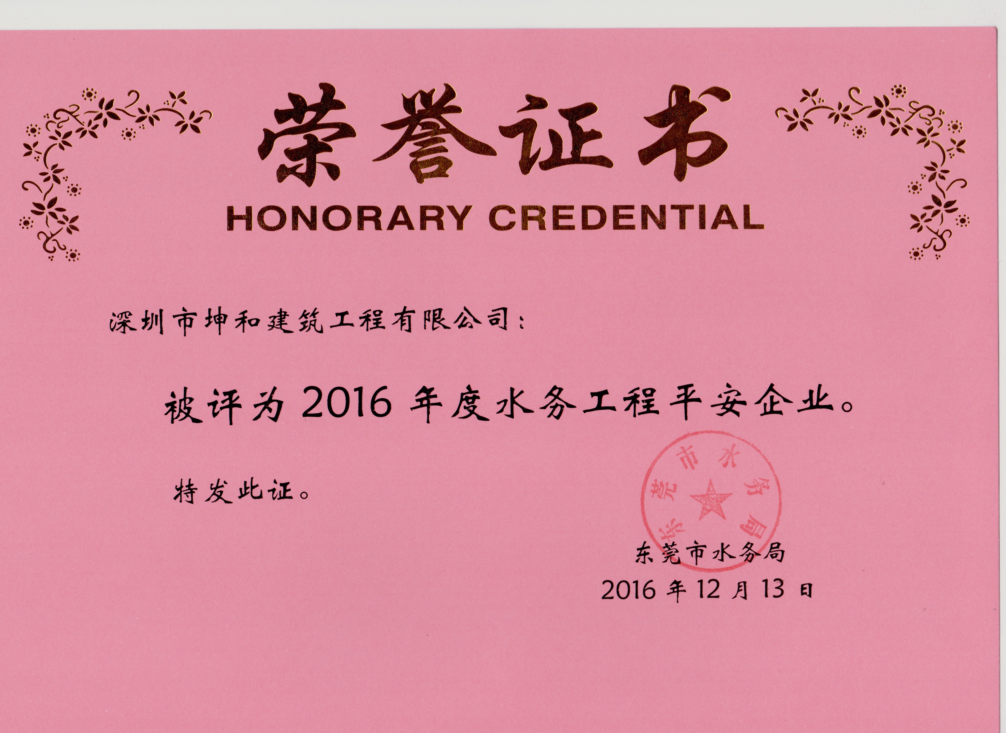 深圳市坤和建筑工程有限公司于二00五年十一月廿八日成立,經過全體員工的共同努力,公司發展迅速,目前公司注冊資金為12010萬元,是一支具有房屋建筑工程施工總承包一級;市政公用工程施工總承包一級;水利水電工程施工總承包二級;地基基礎工程專業承包二級;建筑裝修裝飾工程專業承包二級;建筑機電安裝工程專業承包三級;鋼結構工程專業承包三級資質的專業施工隊伍,并于二00六年通過了ISO9001:2008標準﹑ISO14001:2004標準﹑GT/B2800-2001標準三項管理體系認證。 公司目前擁有各類專業技術人員351人。建筑工程、市政公用工程、水利水電工程、機電工程等各專業注冊建造師99人,注冊造價師5人,高級技術職稱20人,中、初級工程技術職稱和經濟、財會系列的專業人員331人。同時公司設備精良,擁有各類大型工程機械設備391臺,總功率達9600kw以上,這些設備為承接各類工程,確保高效、優質、安全施工奠定了堅實的基礎,是一家擁有全方位施工能力的建筑施工企業。公司多次獲得上級部門的表揚和嘉獎。 公司內部實行計算機智能化管理,建立了一套完善的質量、安全管理體系和制度。嚴格遵守國家規定的各類法律和各項規章制度,積極貫徹以“安全生產、文明施工”為主的生產作業指導方針;始終遵循“質